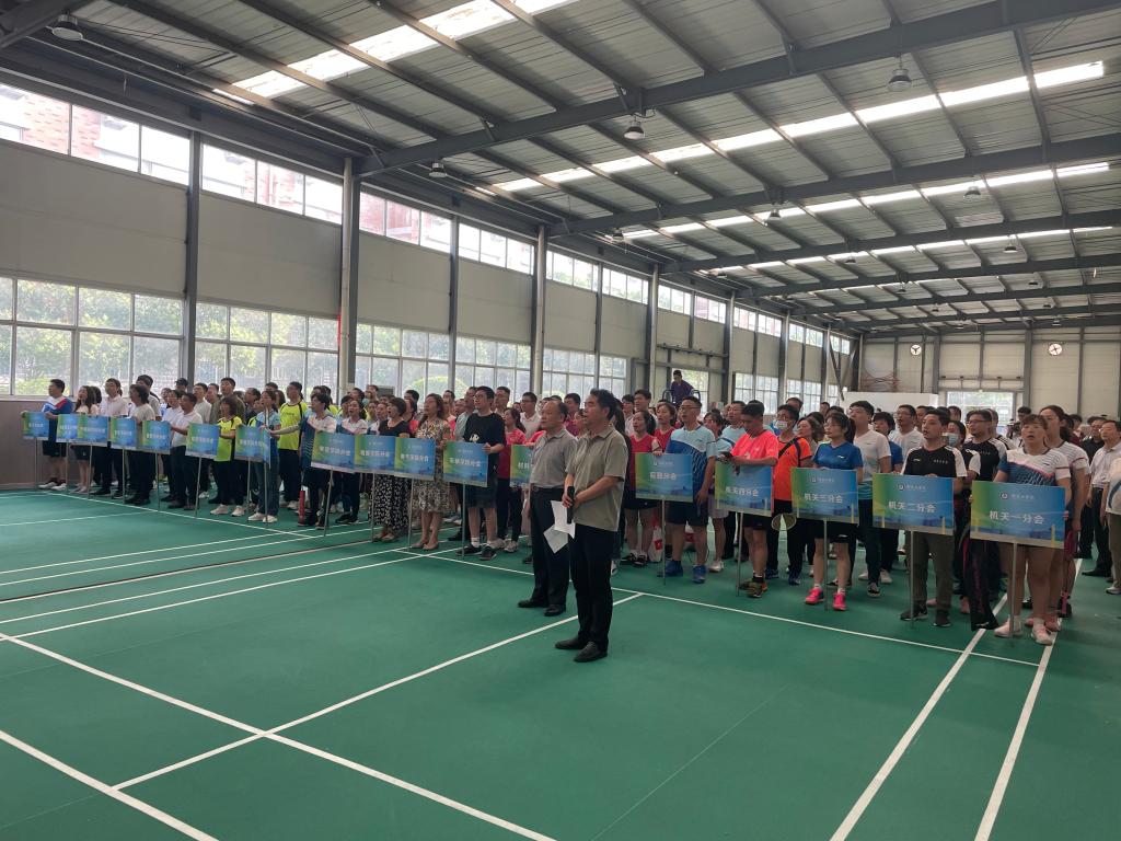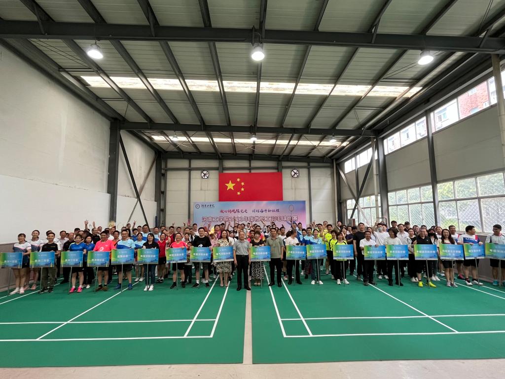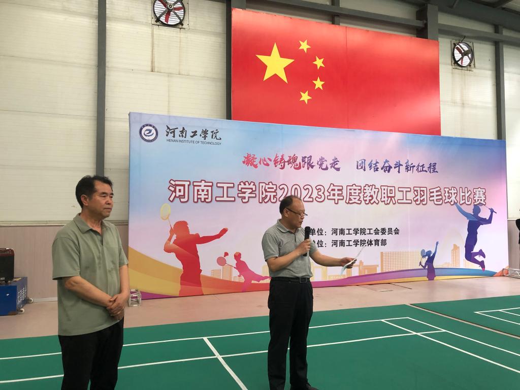 2023年6月1日下午,河南工学院2023年度教职工羽毛球比赛在静苑球类馆开幕。校领导戚新波和来自19个分会代表队的参赛选手和裁判员共计百余人出席开幕式。开幕式由校工会副主席许振兴主持。