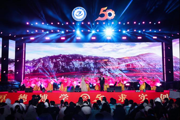 五十年砥砺耕耘,半世纪春华秋实。本次晚会不仅是一场文艺盛宴,更是学校凝聚校友力量、欢迎新生融入的重要纽带。它既是对过去五十年辉煌成就的深情礼赞,也是对美好未来的响亮宣言。本次晚会由校工会、校团委共同主办,艺术学院承办。在晚会筹备期间,校企合作董事单位、众多海内外校友、通过捐赠物资、录制祝福视频等方式助力校庆;新生们也通过参与晚会演出、志愿者服务等活动,感受到了“河工人”的归属感与凝聚力。新的征程已经开启,河南工学院必将承载着五十年的荣耀与梦想,凝聚起全体师生和校友的磅礴力量,在建设机电特色鲜明的高水平应用型大学道路上奋勇前进,续写更加辉煌的教育篇章。