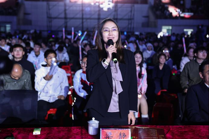 “启航”篇章里,精彩的民乐和舞蹈演出,赢得现场观众的阵阵欢呼和热烈掌声,三句半表演《河工华诞五十年,再谱新篇看明天!》将传统艺术与学校办学成果巧妙结合,幽默的表演让现场笑声不断。校党委副书记路阳领演的《健康赢未来》刚柔并济,将传统武术与现代舞蹈完美融合,展现了新一代河工人昂扬向上的精神风貌;一曲《远走高飞》激情洋溢,充满动感与活力,校党委副书记、副校长梁静即兴致辞,祝愿每一位河工人前程锦绣,将现场气氛推向顶点。最后,晚会在校歌大合唱《开拓之歌》中落下帷幕,熟悉的旋律引发不同年龄层师生的强烈共鸣,台上台下放声高歌,全体演职人员与现场观众共同起立,挥舞着手中的荧光棒,歌声响彻夜空。