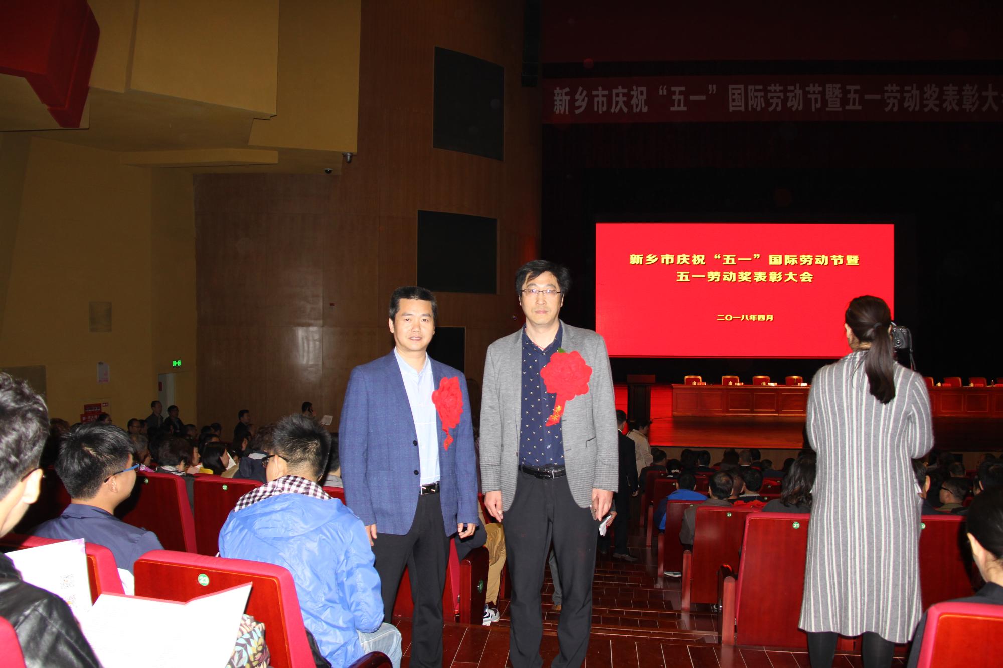 4月24日上午,新乡市庆祝“五一”国际劳动节暨五一劳动奖表彰大会在市平原文化艺术中心大剧院召开,来自全市各行业的职工代表欢聚一堂,新乡市委、市政府四大班子领导出席表彰大会并做重要讲话。大会上表彰了2017年以来,立足本职、爱岗敬业、攻坚克难,为推动我市经济社会健康发展做出重要贡献的先进单位和先进个人,我校教学评估中心主任孙文琦教授、实验实训中心王来振技师喜获“新乡市五一劳动奖章”荣誉称号。
