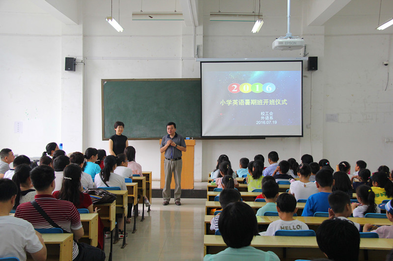 暑假期间,校工会与外语系党总支落实“两学一做”实践教育活动,联合举办暑期小学英语辅导班,义务为我校教职工子女进行英语培训和辅导。
