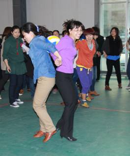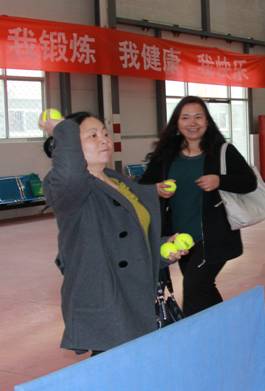 3月8日下午,我校静苑球类馆热闹非凡,一场别开生面的“迎三八”趣味运动会在这里举行。来自我校十九个分会的约200名女教工参加了反弹乒乓球、投掷保龄球、网球投准、铺石过河比赛、夹球接力等多个项目。个人竞技,团体协作,你方唱罢我登场,女教工们让运动会变成了健康和欢乐的海洋。