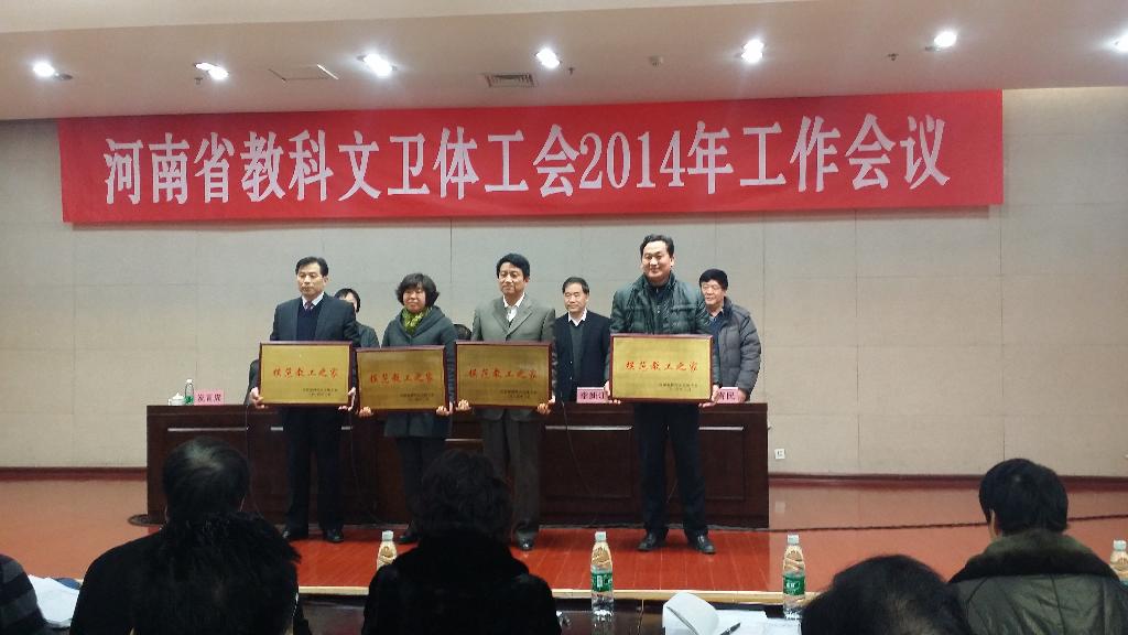 近日,在河南省教科文卫体工会2014年度工作会议上,我校被授予“模范教工之家”称号,这是我校工会经过多年的艰苦努力,所取得的一项崇高荣誉。