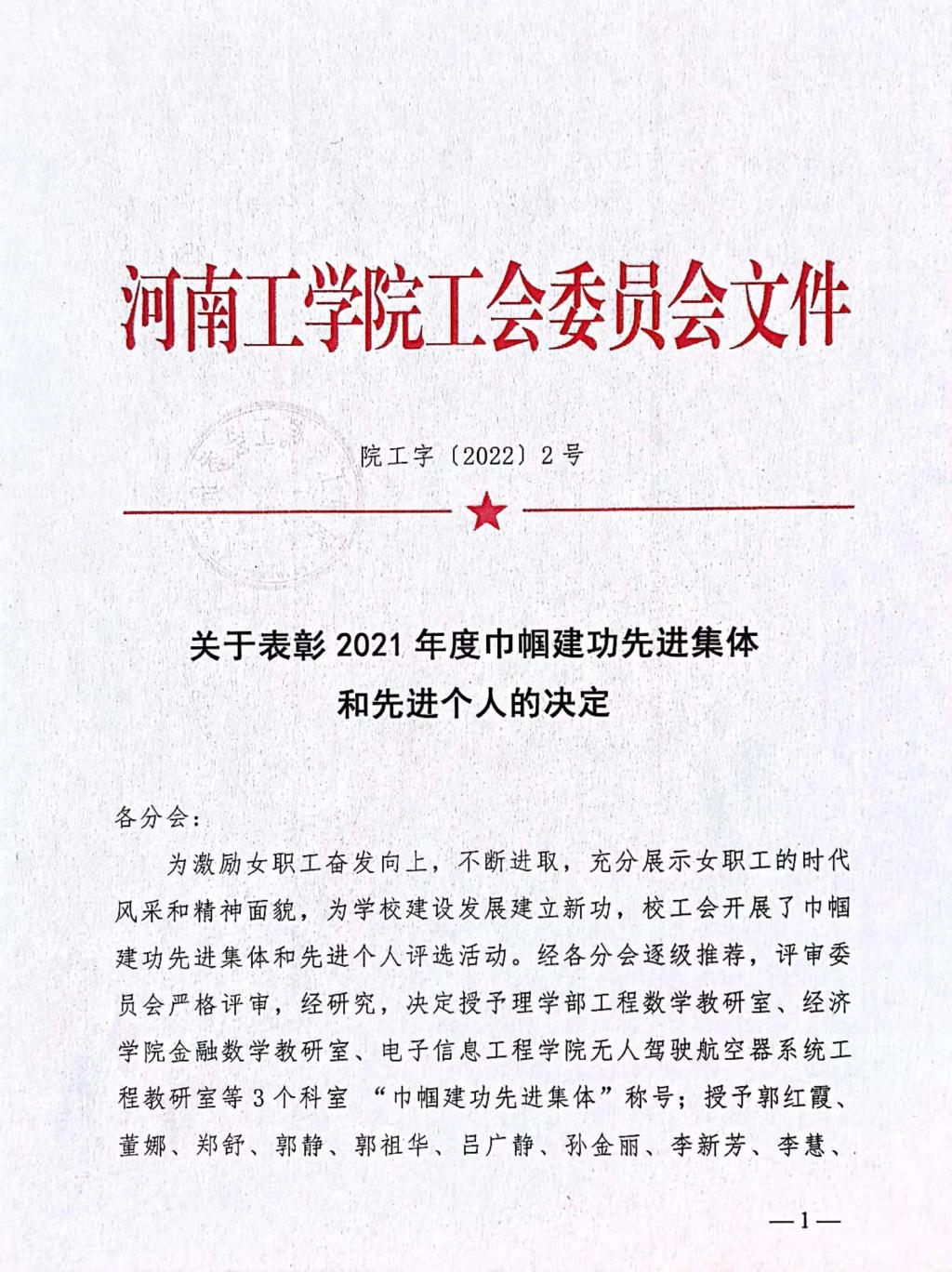 关于表彰2021年度巾帼建功先进集体和先进个人的决定