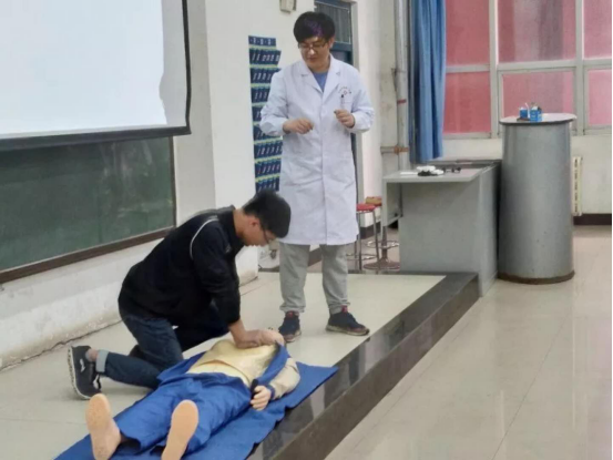 最后许医让在场的老师和学生也上台进行了急救操作体验,并进行了现场指导。本次知识讲座是该分工会服务职工生活的活动内容。