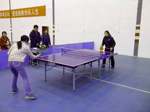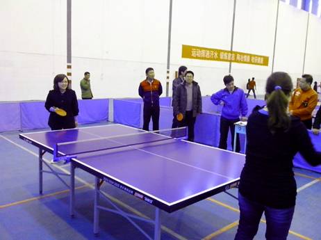 为进一步深化“五个一”健身活动,丰富基础部全体教职员工的业余文化生活,在基础部党政领导的大力支持下,基础部分会小组首届乒乓球团体对抗赛于2013年4月26日圆满落下帷幕。本次比赛由基础部分会第二工会小组精心组织、总体负责,彭昆老师任总裁判长,乒乓球专选班学生担任裁判工作。