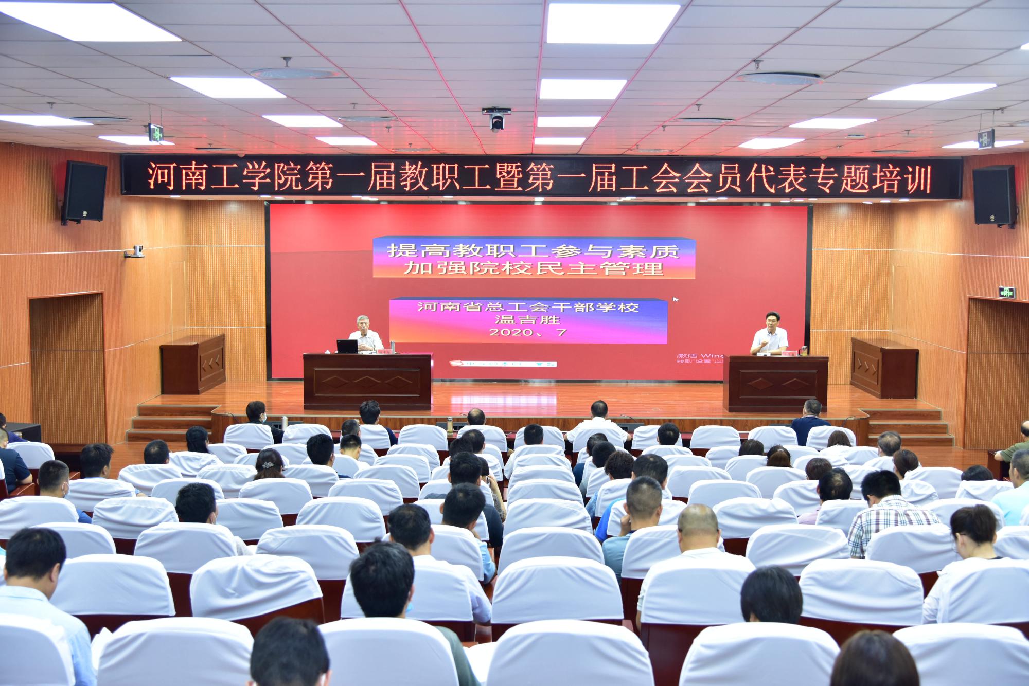 7月10日上午,为提高履职尽责能力,在学校办公楼十二楼第三会议室举办了河南工学院第一届教职工暨工会会员代表专题培训会议。会议特邀河南省总工会干部学校原副校长温吉胜教授,为大家做题目为《提高教职工参与素质,加强院校民主管理》的专题讲座。会议由校党委副书记、工会主席李贵敏主持,第一届教职工暨工会会员全体代表、校工会及各分会部分干部参加了培训会。
