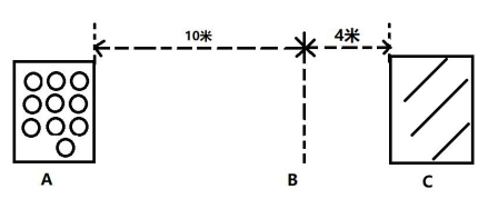 比赛方法如上图:比赛开始,参赛队员从A球框中的抱出1个球,跑至B投掷点后,将球投掷到C球框中。依此循环,以一分钟内,累计投掷到C球框中球的数量决定名次。如在B点踩线投中,按犯规处理(投中不算);如遇成绩相同,则进行一分钟复赛,直至决出名次。