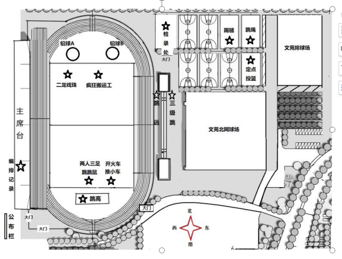 为方便使参赛教工找到比赛场地并提前做好参赛准备,现将运动会秩序册及比赛场地地点详细平面示意图已公布。教工青年组为丙组,中年为丁组,老年为戊组。女丙400米,男戊两龙戏珠、两人三足,女戊两龙戏珠,因报名人数不足4人/4对,故取消以上项目。参赛各分会教工准时参加比赛,提前20分直接到比赛场地适应场地器材,比赛开始点名三次不到者将按竞赛规程取消比赛资格。请教工参加田径场内的比赛时,尽量减少在跑道上走动,以免影响其他赛组的竞赛。